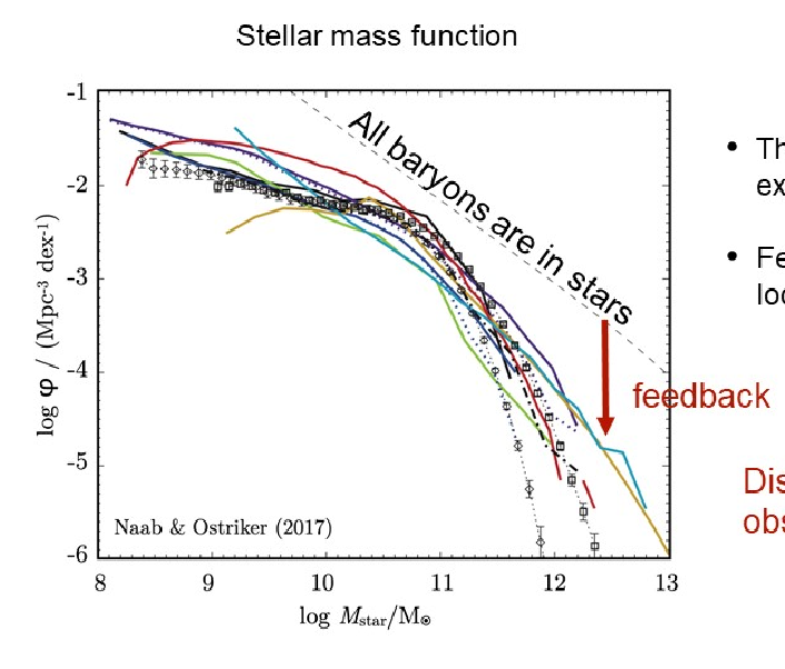 在大尺度上,星体的质量曲线和我们所预期的均匀分布不一样,而是在两端都有一个「feedback」现象.