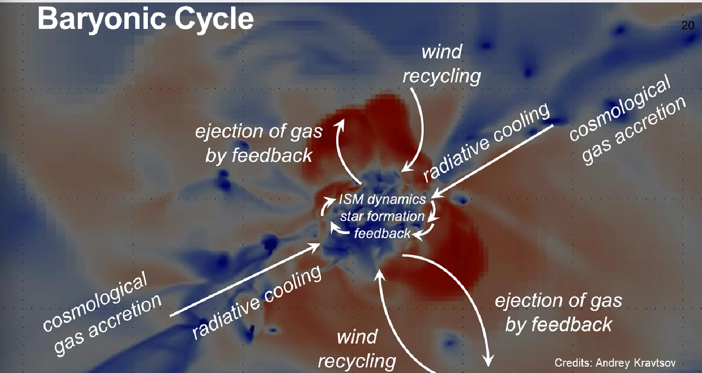 但是我们现在遇到的问题是,星系正在丢失它们的重子. 这个问题和我们之前的三个 open question 是相关的:实际上并没有重子物质消失,而是被抛射到了我们无法观测的地方.