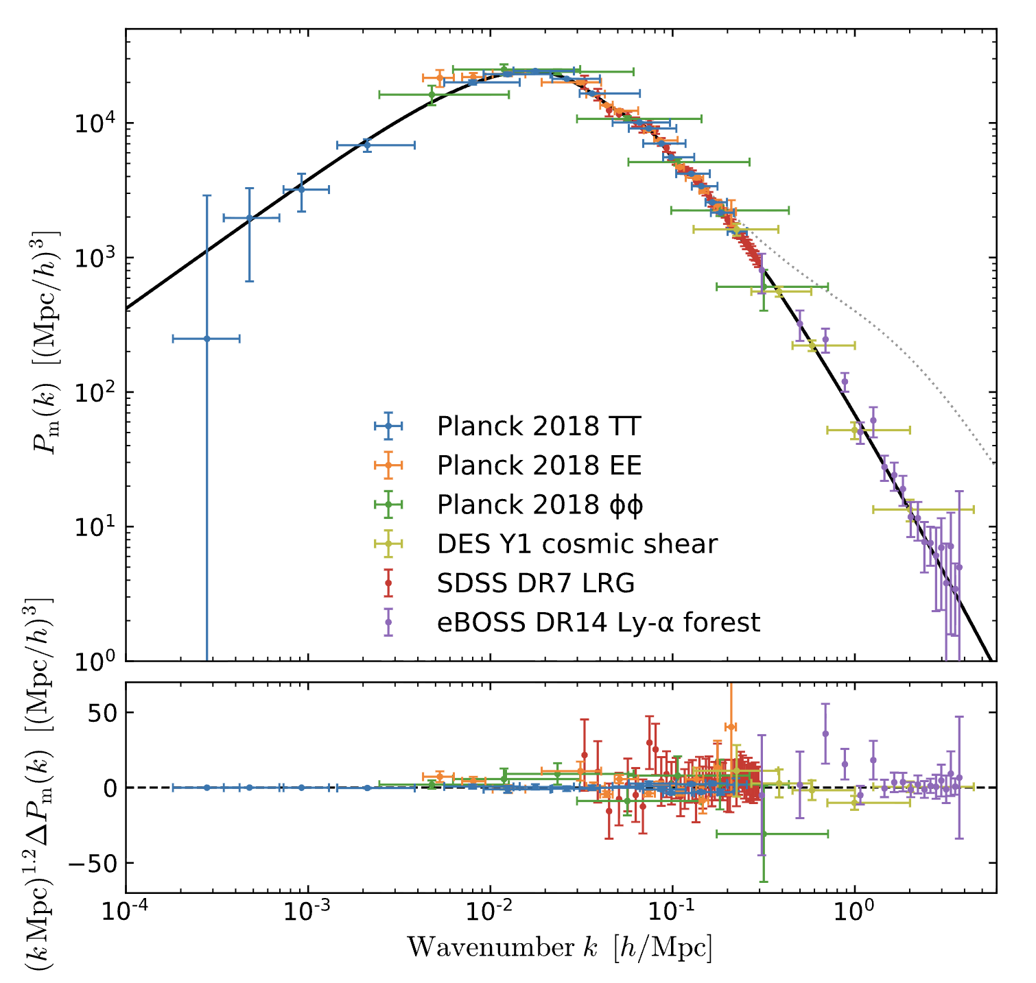 下面是宇宙学上实际的功率谱 (非常漂亮的两段幂律):