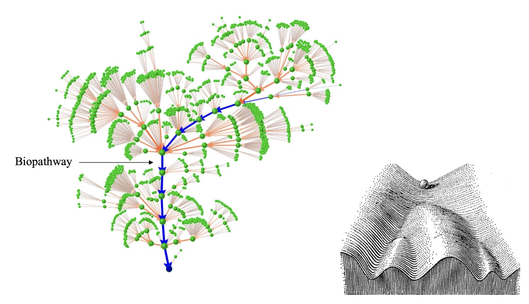 这样的主干道径迹就是一种所谓的吸引子,对于生物而言,甚至可以是一个吸引盆,生物网络的稳定性是非常好的. 这种稳健的特性本质上来源于网络自身的连接方式.
